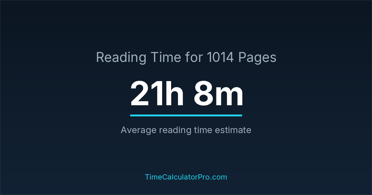 Using a reading time calculator, you can estimate that 1014 pages will take around 21 hours and 8 minutes to complete.