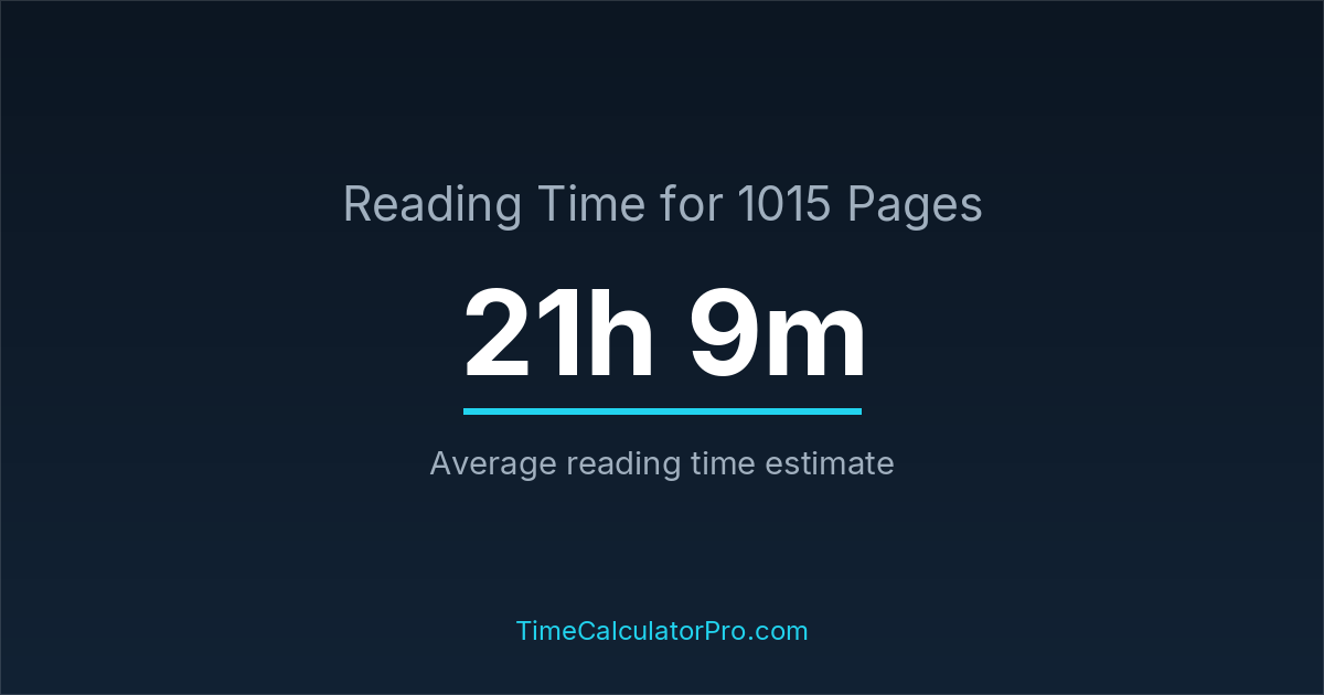 Using a reading time calculator, you can estimate that 1015 pages will take around 21 hours and 9 minutes to complete.