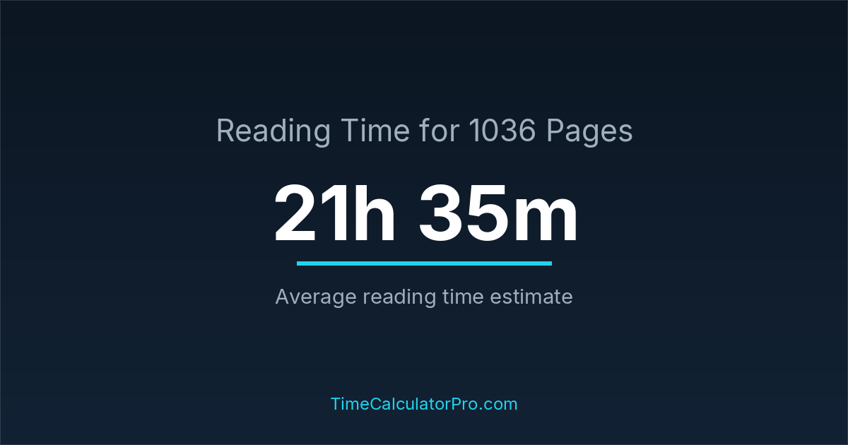 The average reading time for 1036 pages is about 21 hours and 35 minutes, but this can change depending on the difficulty of the text.