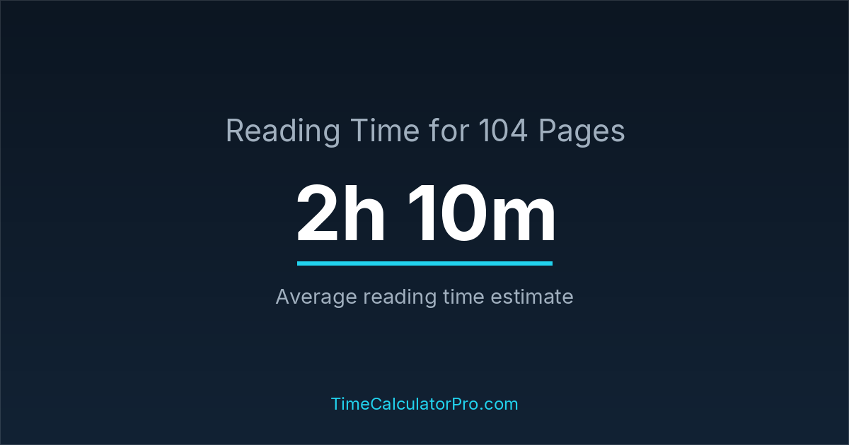 Reading 104 pages usually takes approximately 2 hours and 10 minutes for the average reader, though this can vary depending on concentration and reading habits.