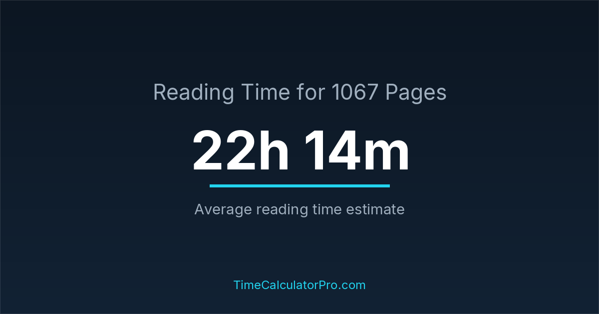 If you read at an average speed of 200 words per minute, reading 1067 pages will take approximately 22 hours and 14 minutes. This estimate assumes around 250 words per page, which is typical for most books.