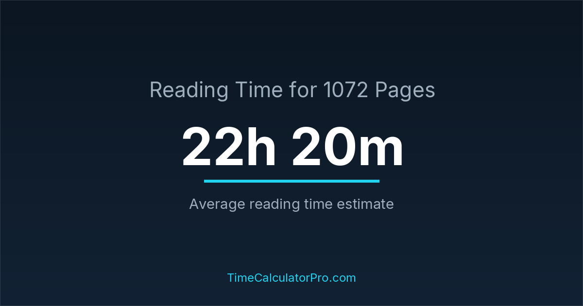 Using a reading time calculator, you can estimate that 1072 pages will take around 22 hours and 20 minutes to complete.