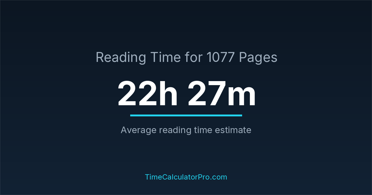 Reading 1077 pages usually takes approximately 22 hours and 27 minutes for the average reader, though this can vary depending on concentration and reading habits.