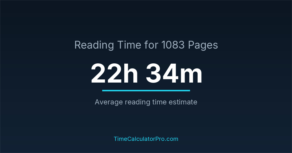 Using a reading time calculator, you can estimate that 1083 pages will take around 22 hours and 34 minutes to complete.