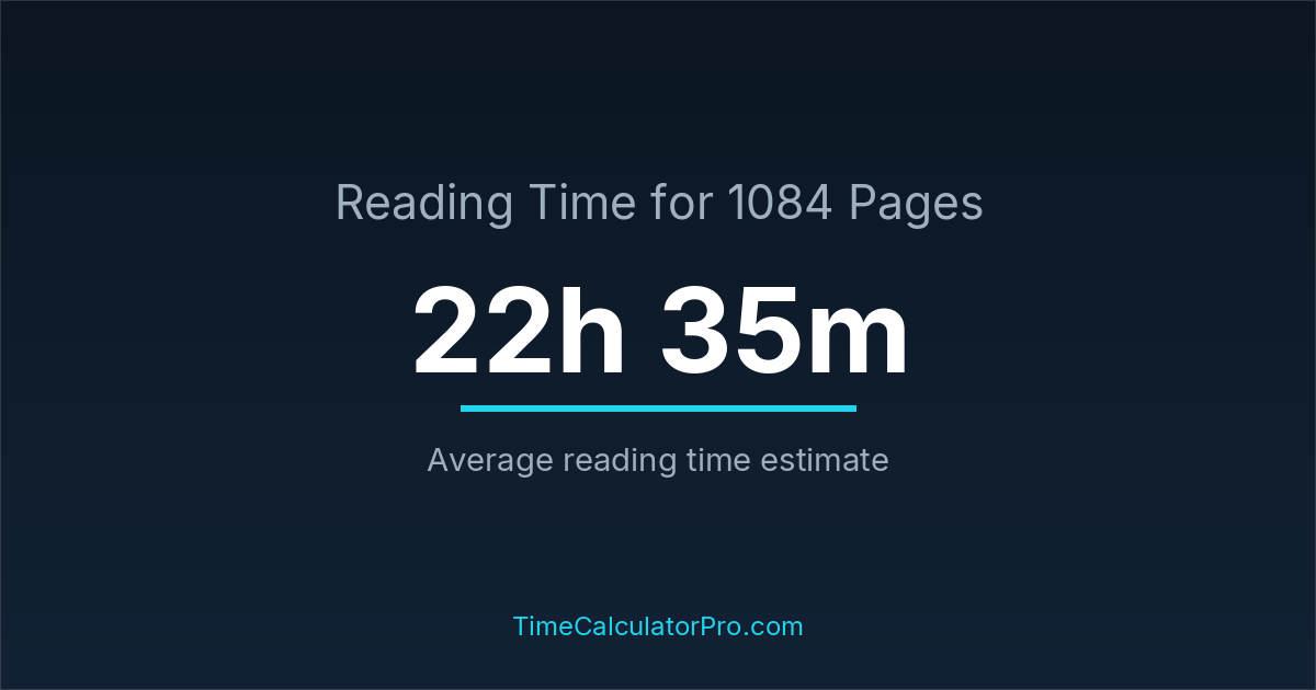 Reading 1084 pages usually takes approximately 22 hours and 35 minutes for the average reader, though this can vary depending on concentration and reading habits.