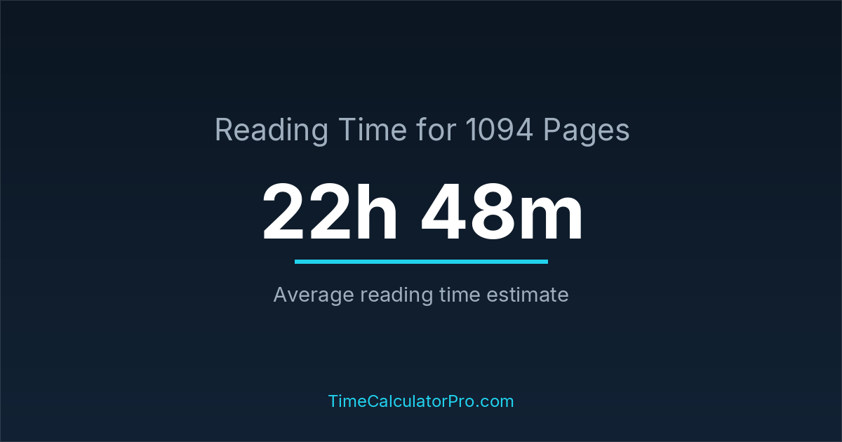 A reading time calculator helps estimate how long it will take to complete 1094 pages before you even begin reading, allowing you to plan your time more effectively.