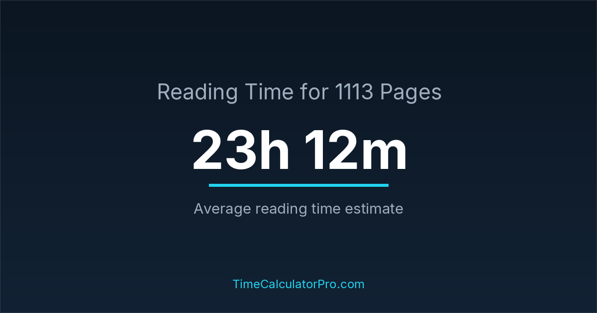 If you read at an average speed of 200 words per minute, reading 1113 pages will take approximately 23 hours and 12 minutes. This estimate assumes around 250 words per page, which is typical for most books.