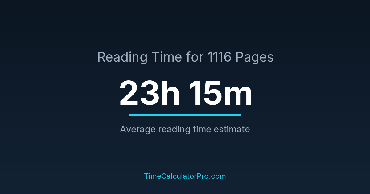 If you read at an average speed of 200 words per minute, reading 1116 pages will take approximately 23 hours and 15 minutes. This estimate assumes around 250 words per page, which is typical for most books.