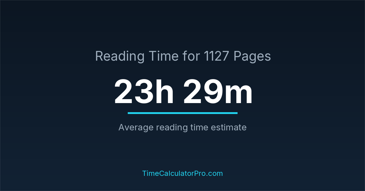 On average, reading 1127 pages may require about 23 hours and 29 minutes for most readers, assuming a standard reading pace and moderate difficulty.