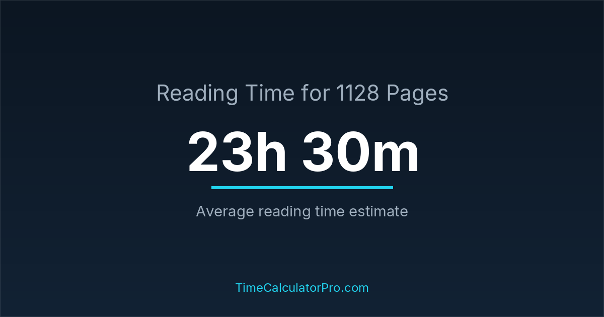 If you read at an average speed of 200 words per minute, reading 1128 pages will take approximately 23 hours and 30 minutes. This estimate assumes around 250 words per page, which is typical for most books.