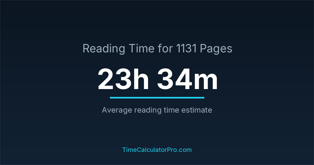 Reading 1131 pages takes about 23 hours and 34 minutes.