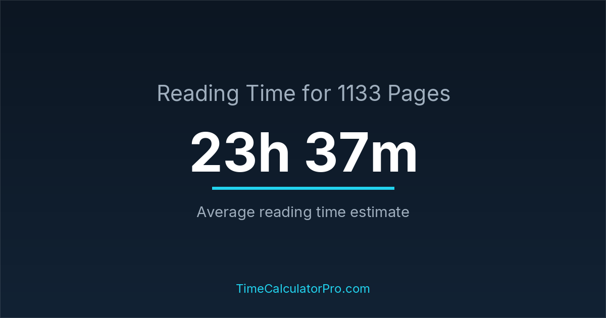 If you read at an average speed of 200 words per minute, reading 1133 pages will take approximately 23 hours and 37 minutes. This estimate assumes around 250 words per page, which is typical for most books.
