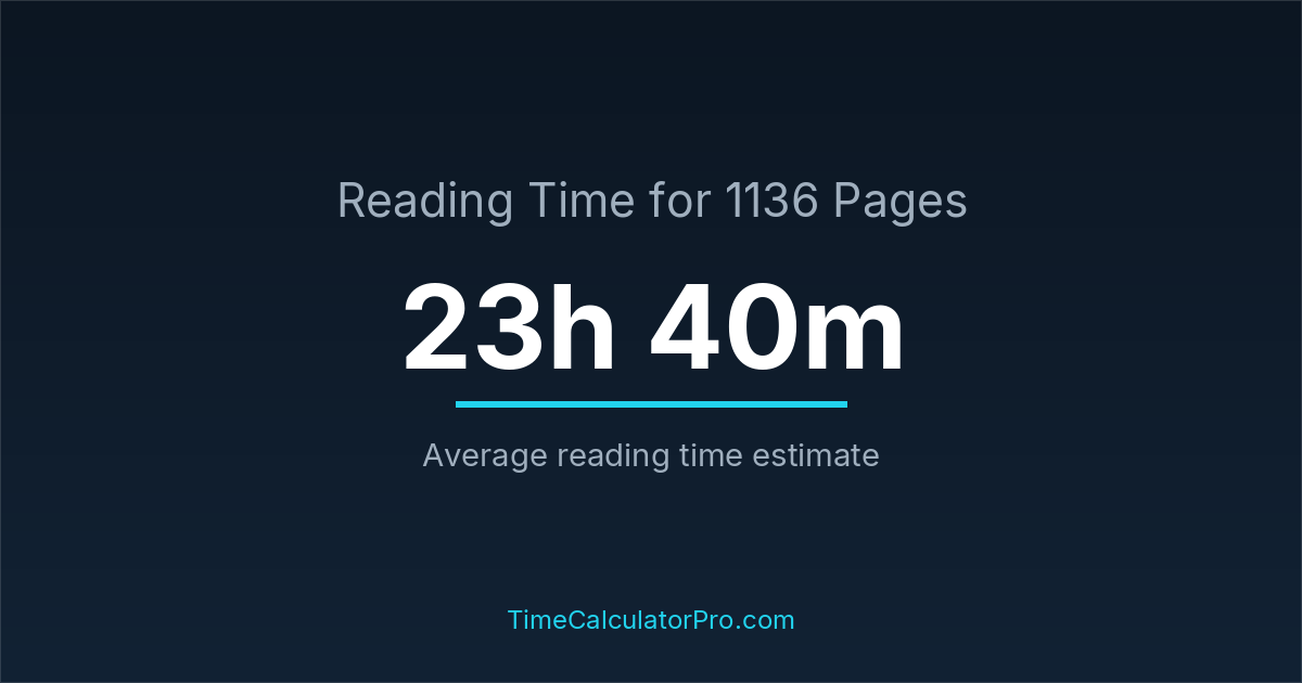If you read at an average speed of 200 words per minute, reading 1136 pages will take approximately 23 hours and 40 minutes. This estimate assumes around 250 words per page, which is typical for most books.