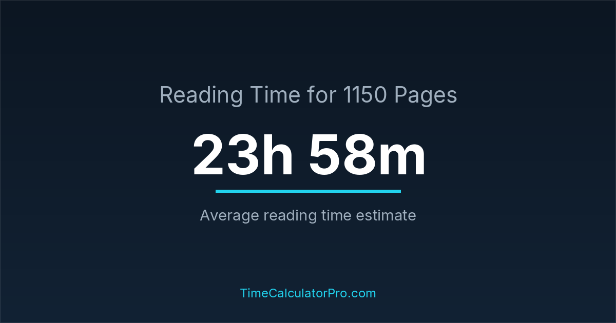 If you read at an average speed of 200 words per minute, reading 1150 pages will take approximately 23 hours and 58 minutes. This estimate assumes around 250 words per page, which is typical for most books.