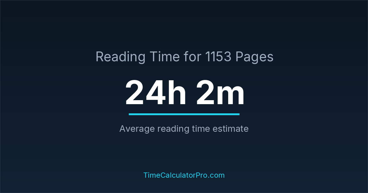 The estimated time to read 1153 pages is approximately 24 hours and 2 minutes for an average adult reader.