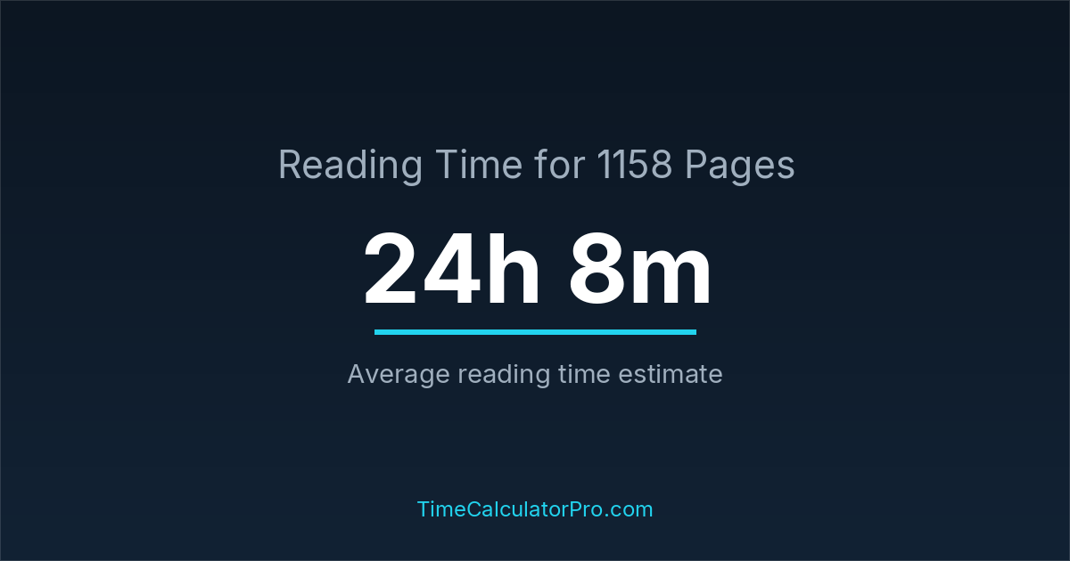 Reading 1158 pages takes about 24 hours and 8 minutes.