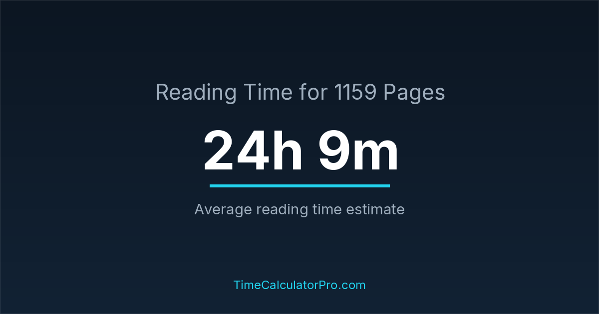 Using a reading time calculator, you can estimate that 1159 pages will take around 24 hours and 9 minutes to complete.