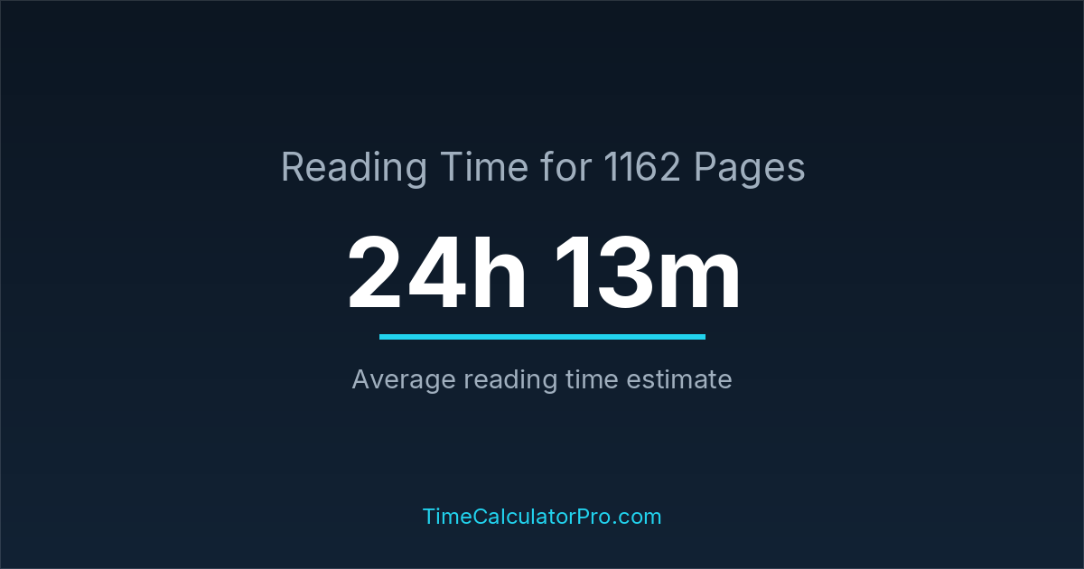 Reading 1162 pages takes about 24 hours and 13 minutes.