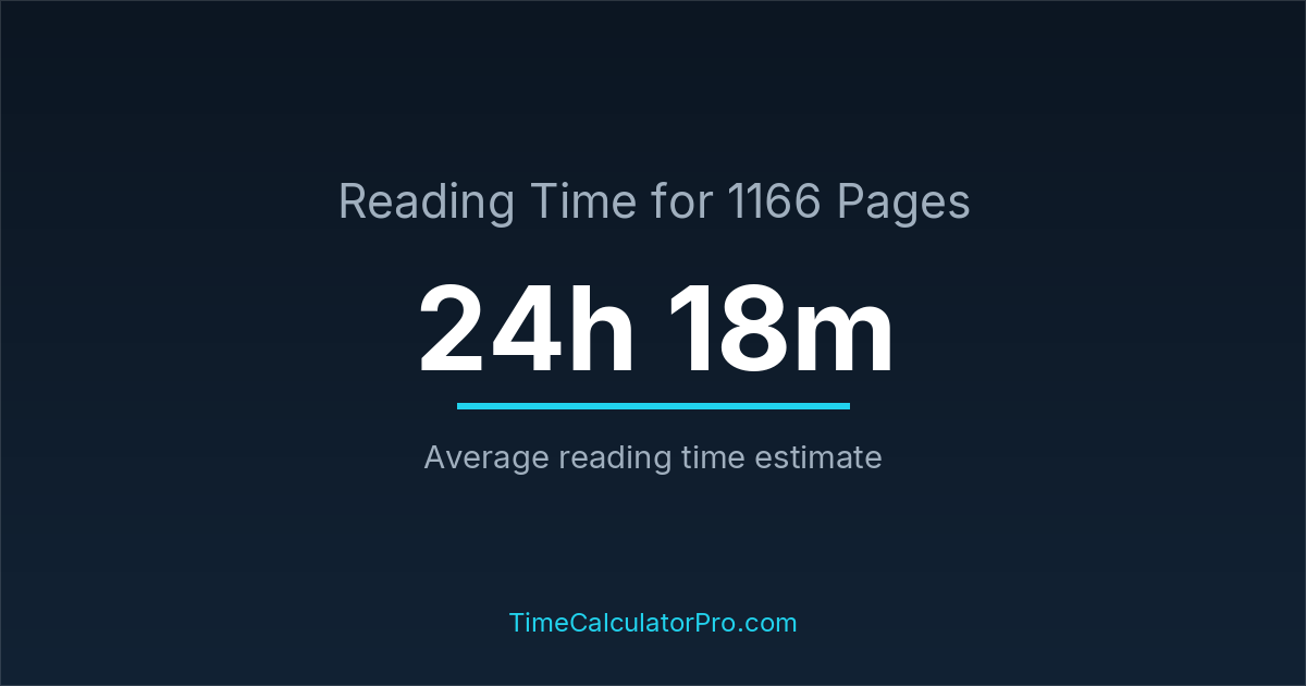 Reading 1166 pages takes about 24 hours and 18 minutes.