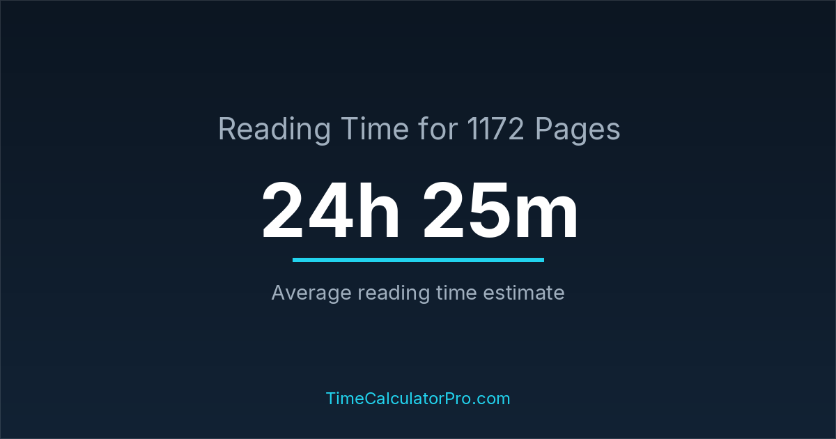 Reading 1172 pages takes about 24 hours and 25 minutes.