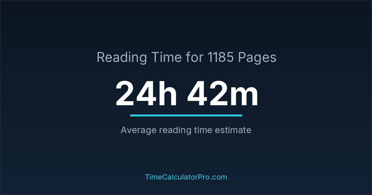 If you read at an average speed of 200 words per minute, reading 1185 pages will take approximately 24 hours and 42 minutes. This estimate assumes around 250 words per page, which is typical for most books.
