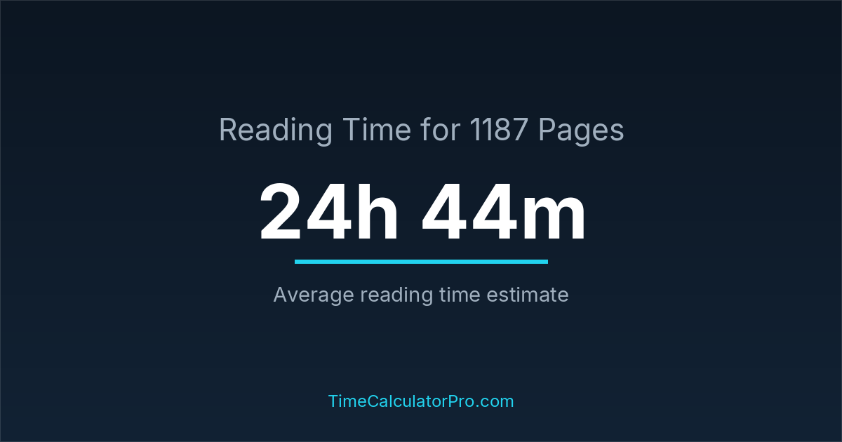 The average reading time for 1187 pages is about 24 hours and 44 minutes, but this can change depending on the difficulty of the text.