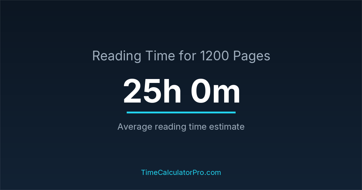 On average, reading 1200 pages may require about 25 hours and 0 minutes for most readers, assuming a standard reading pace and moderate difficulty.
