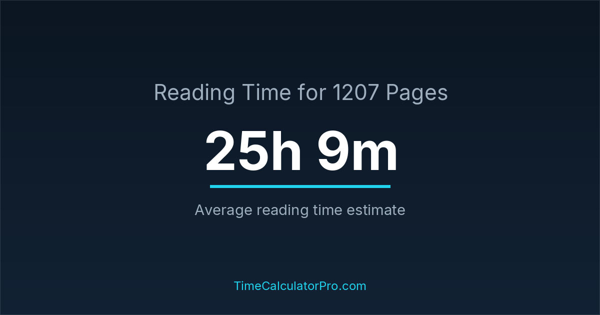 Reading 1207 pages takes about 25 hours and 9 minutes.