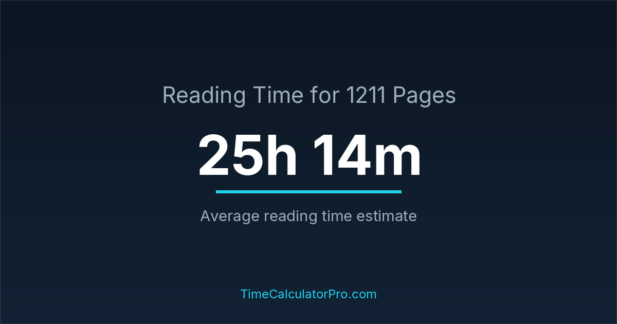 Many readers ask how long it takes to read 1211 pages, and the answer is typically around 25 hours and 14 minutes depending on reading speed.