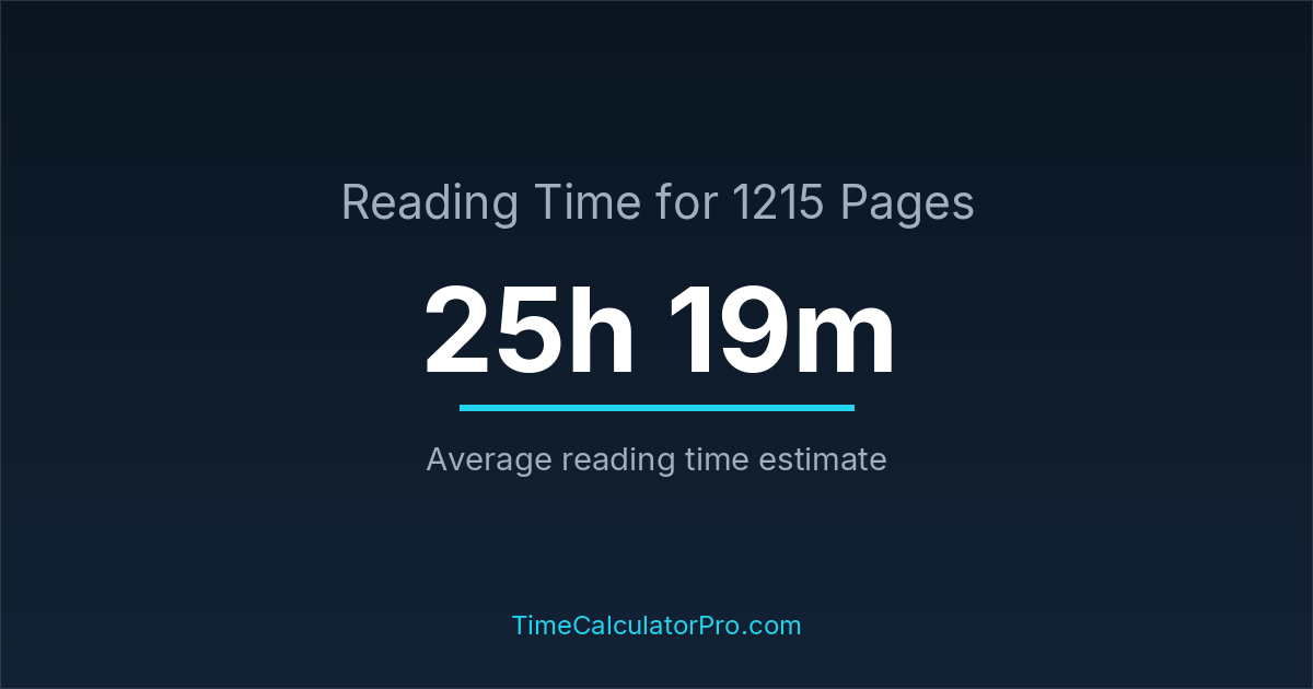 Reading 1215 pages takes about 25 hours and 19 minutes.