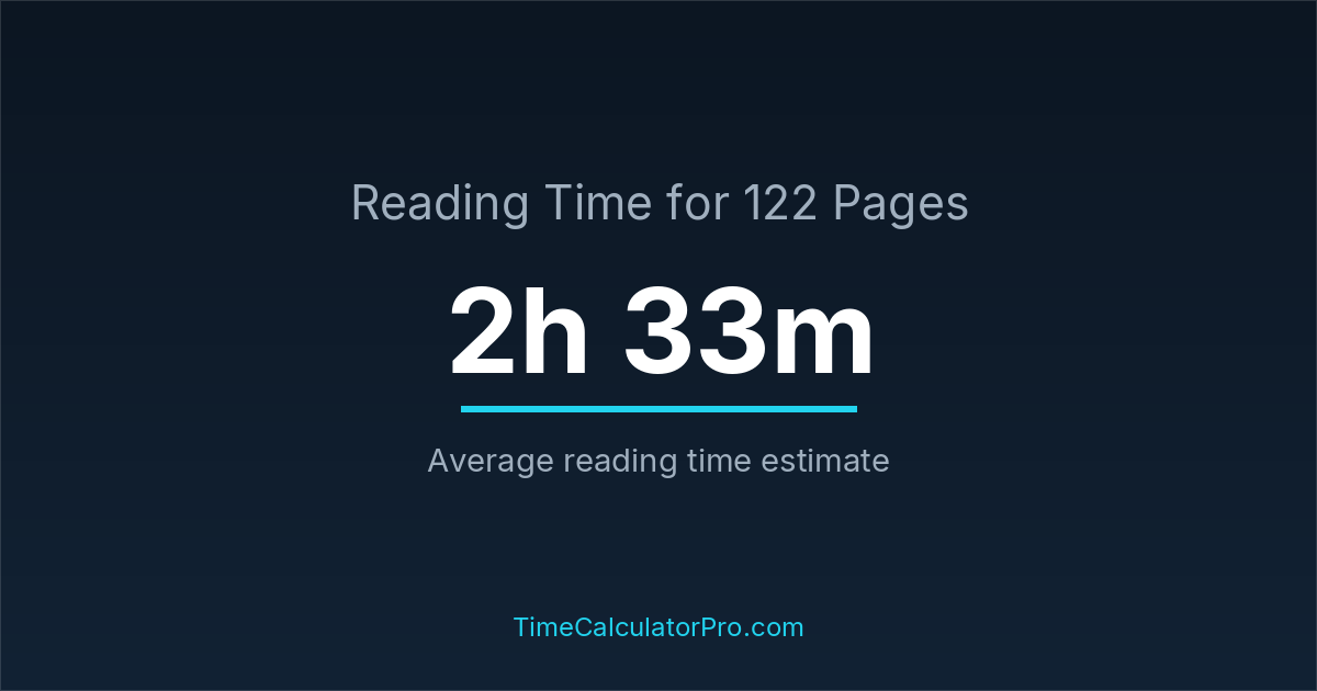 If you read at an average speed of 200 words per minute, reading 122 pages will take approximately 2 hours and 33 minutes. This estimate assumes around 250 words per page, which is typical for most books.
