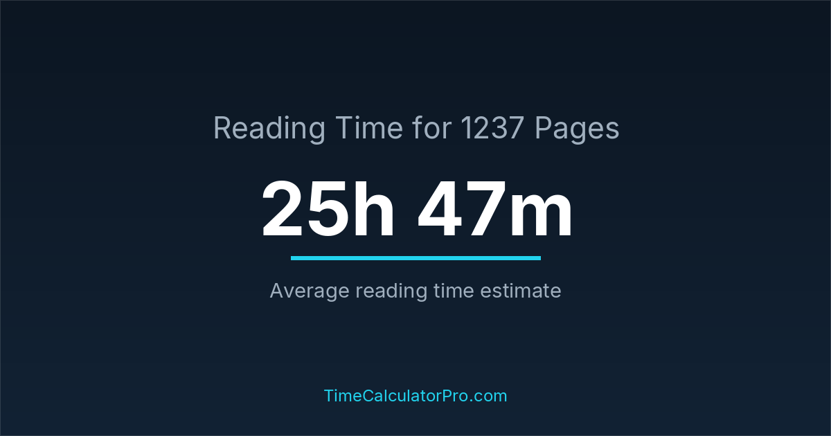 Reading 1237 pages takes about 25 hours and 47 minutes.
