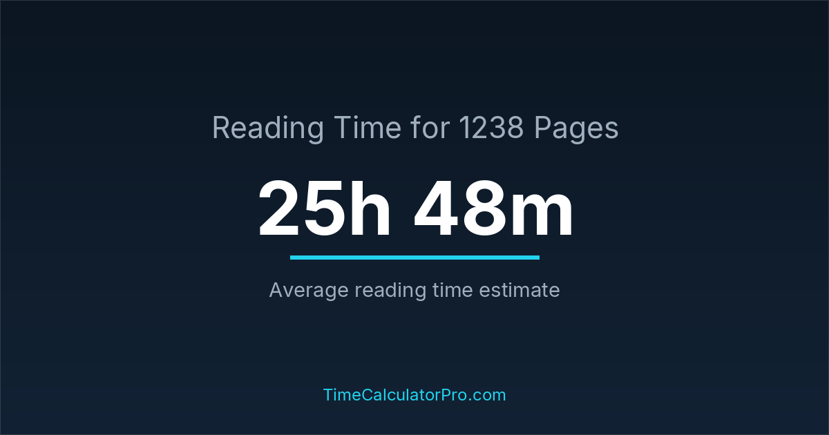 Reading 1238 pages takes about 25 hours and 48 minutes.