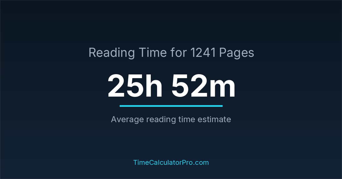 Reading 1241 pages takes about 25 hours and 52 minutes.