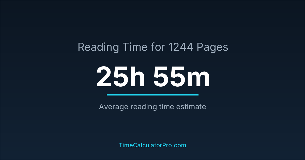Reading 1244 pages takes about 25 hours and 55 minutes.