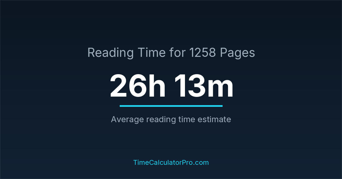 Reading 1258 pages takes about 26 hours and 13 minutes.