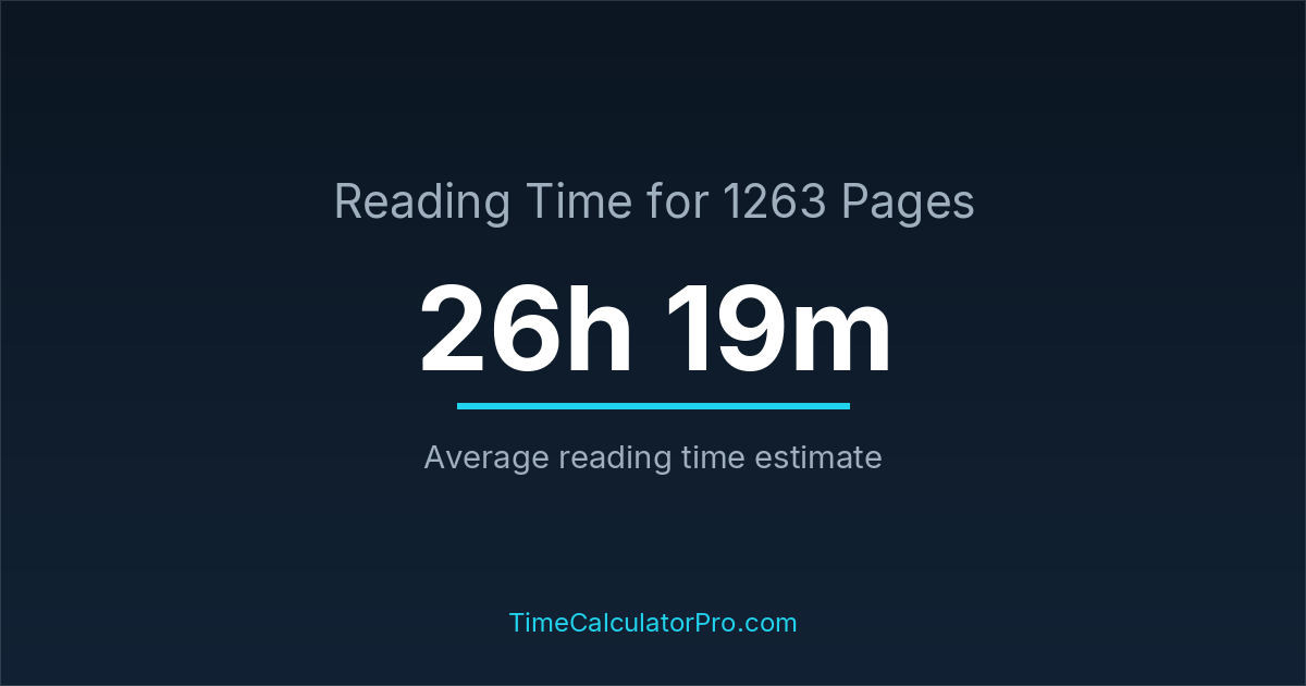 Reading 1263 pages usually takes approximately 26 hours and 19 minutes for the average reader, though this can vary depending on concentration and reading habits.
