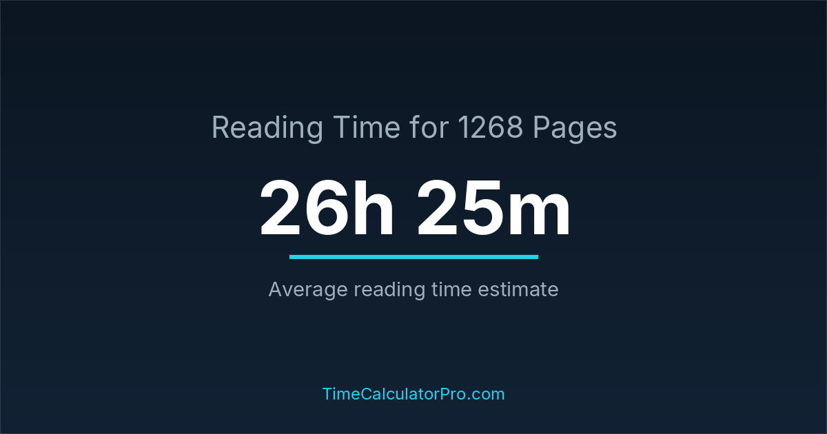 Using a reading time calculator, you can estimate that 1268 pages will take around 26 hours and 25 minutes to complete.