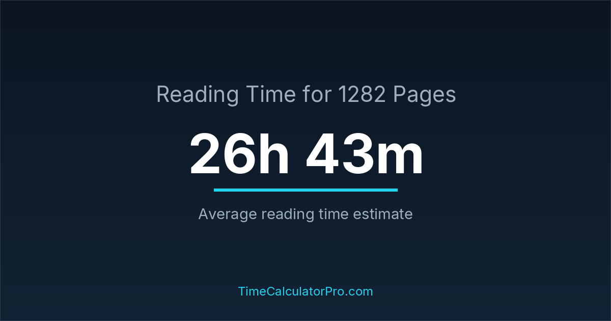 A reading time calculator helps estimate how long it will take to complete 1282 pages before you even begin reading, allowing you to plan your time more effectively.