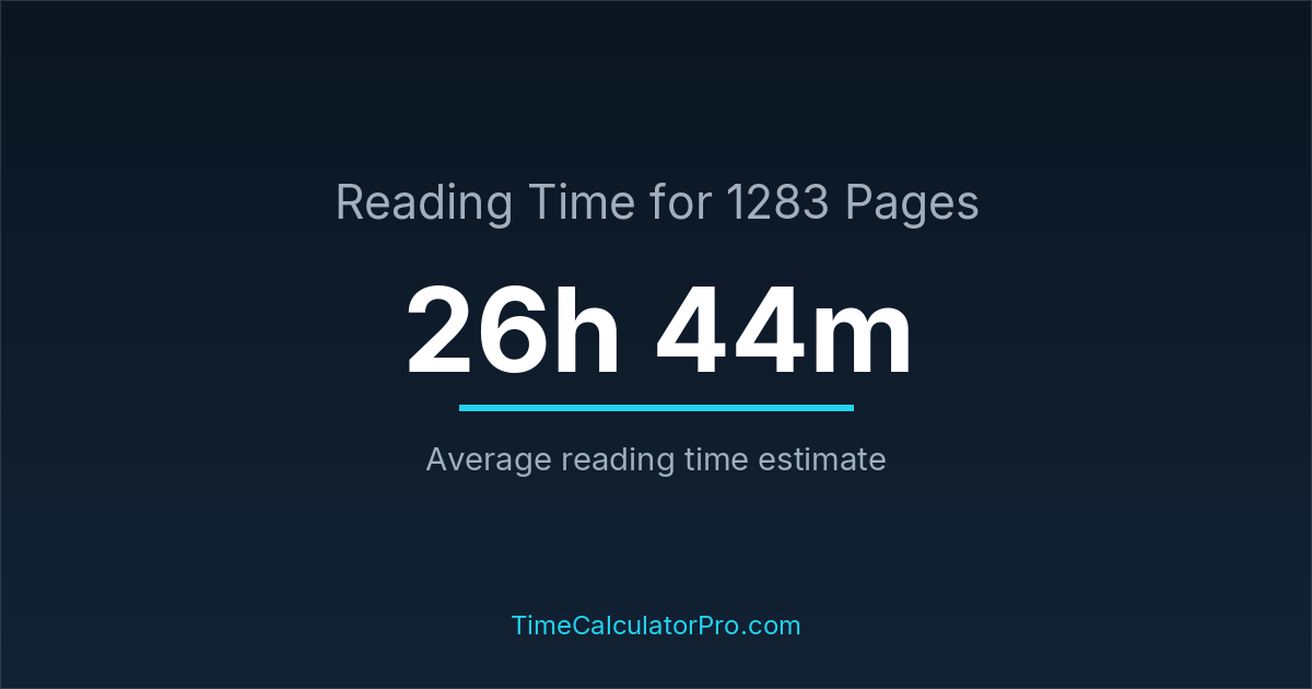A reading time calculator helps estimate how long it will take to complete 1283 pages before you even begin reading, allowing you to plan your time more effectively.