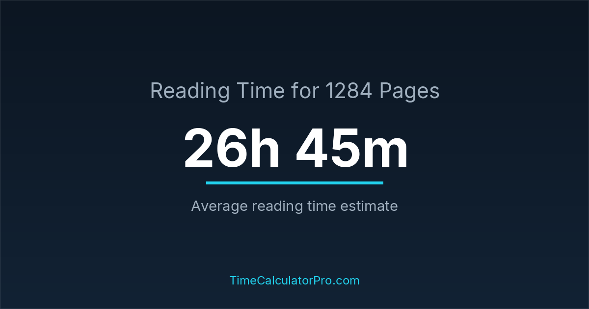 If you read at an average speed of 200 words per minute, reading 1284 pages will take approximately 26 hours and 45 minutes. This estimate assumes around 250 words per page, which is typical for most books.