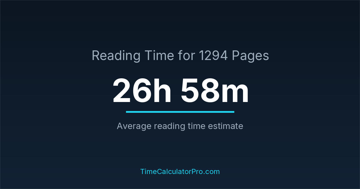 The average reading time for 1294 pages is about 26 hours and 58 minutes, but this can change depending on the difficulty of the text.