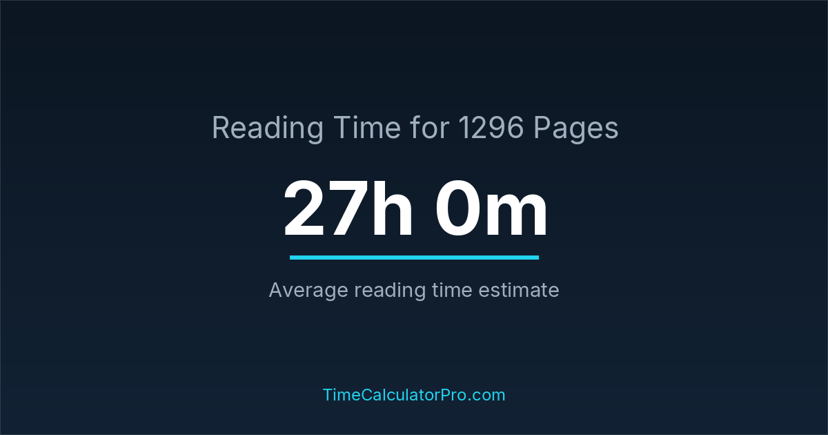 A reading time calculator helps estimate how long it will take to complete 1296 pages before you even begin reading, allowing you to plan your time more effectively.