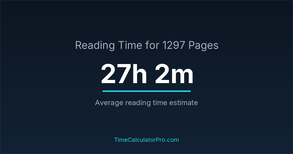 If you read at an average speed of 200 words per minute, reading 1297 pages will take approximately 27 hours and 2 minutes. This estimate assumes around 250 words per page, which is typical for most books.