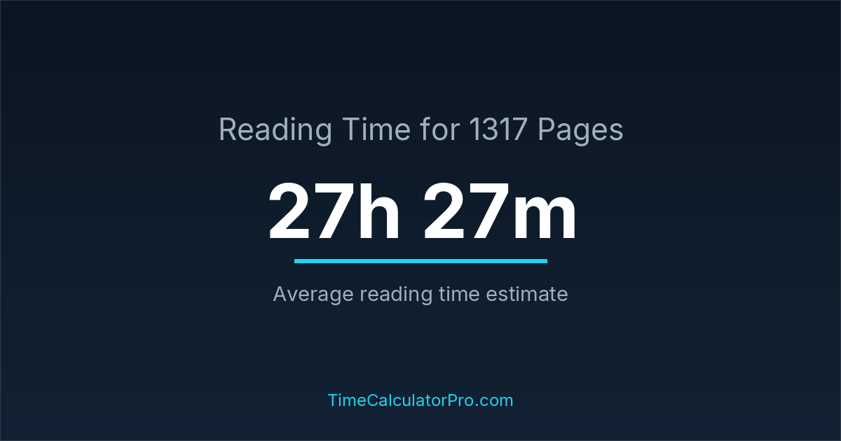 On average, reading 1317 pages may require about 27 hours and 27 minutes for most readers, assuming a standard reading pace and moderate difficulty.