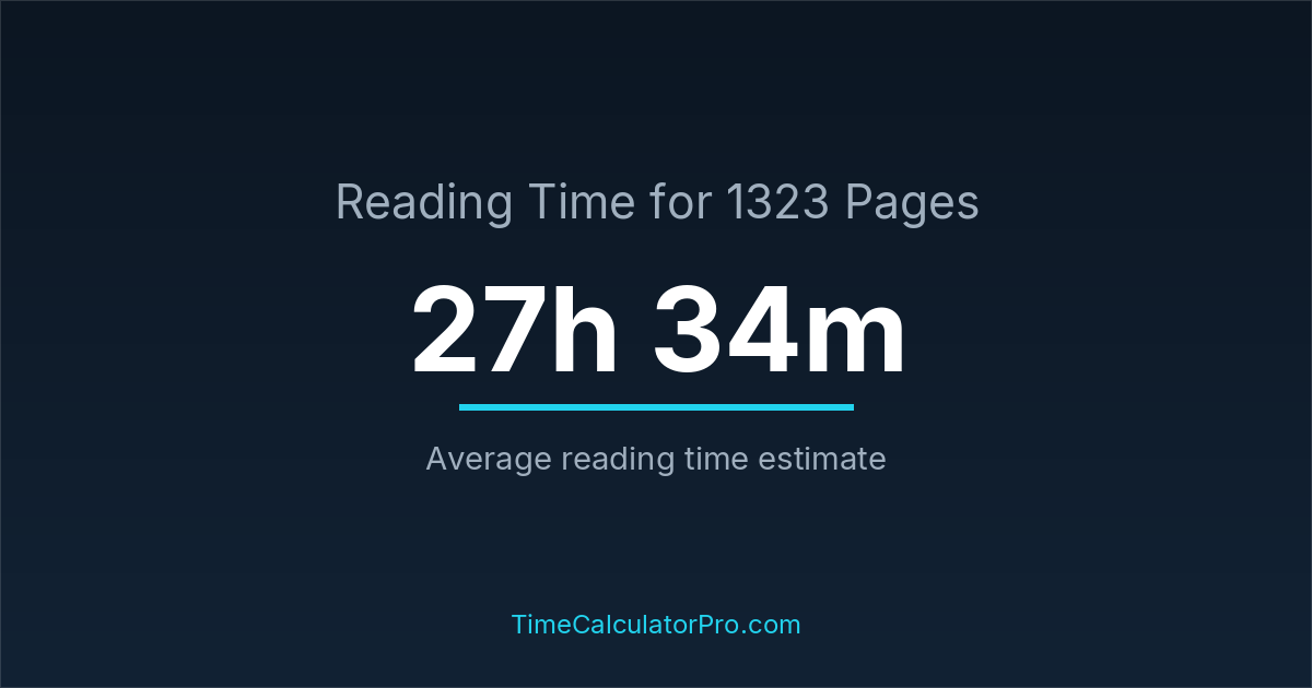 If you read at an average speed of 200 words per minute, reading 1323 pages will take approximately 27 hours and 34 minutes. This estimate assumes around 250 words per page, which is typical for most books.