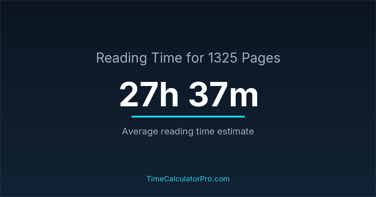 On average, reading 1325 pages may require about 27 hours and 37 minutes for most readers, assuming a standard reading pace and moderate difficulty.