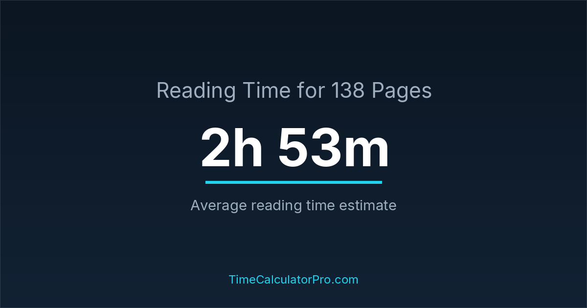On average, reading 138 pages may require about 2 hours and 53 minutes for most readers, assuming a standard reading pace and moderate difficulty.