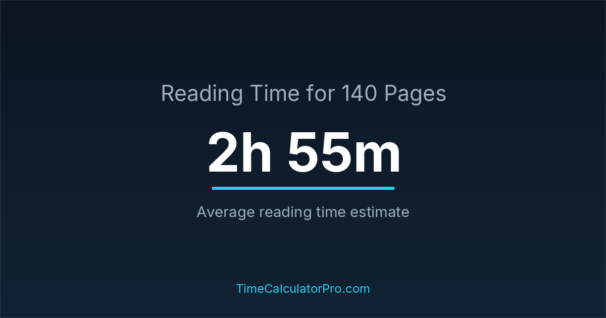 If you read at an average speed of 200 words per minute, reading 140 pages will take approximately 2 hours and 55 minutes. This estimate assumes around 250 words per page, which is typical for most books.