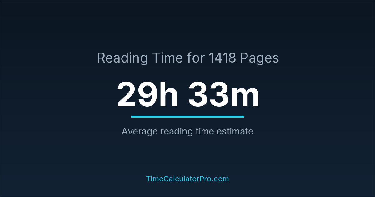 Reading 1418 pages takes about 29 hours and 33 minutes.